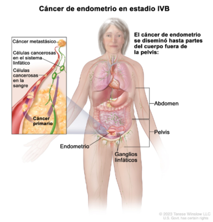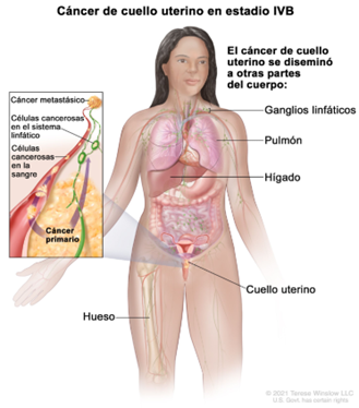- Estadio IVB: el cáncer se diseminó fuera de la pelvis a partes del cuerpo alejadas del tumor.