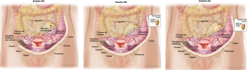 se divide en los estadios IIIC1 y IIIC2, según la forma en que se diseminó el cáncer a los ganglios linfáticos.