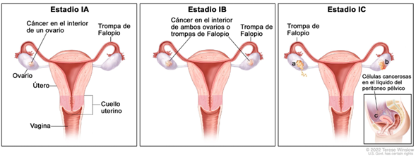 En el estadio I, se formó cáncer y se encuentra solo en el cuello uterino. Se divide en los estadios IA y IB según el tamaño del tumor y la profundidad a la que este se diseminó.